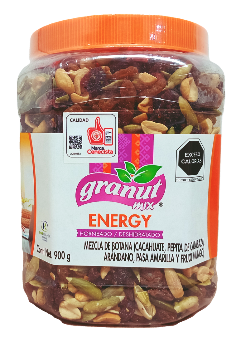 Tarro Energy 900g Mezcla horneada de nueces, frutos secos y Nibs de cacao Snack Saludable